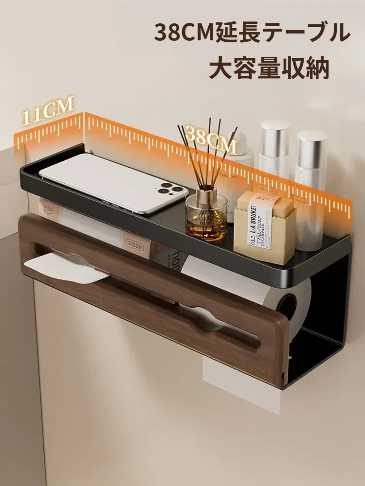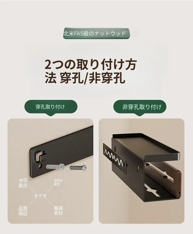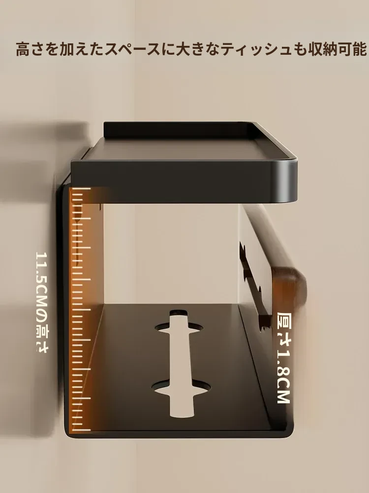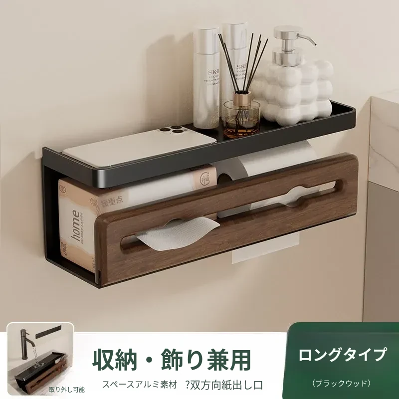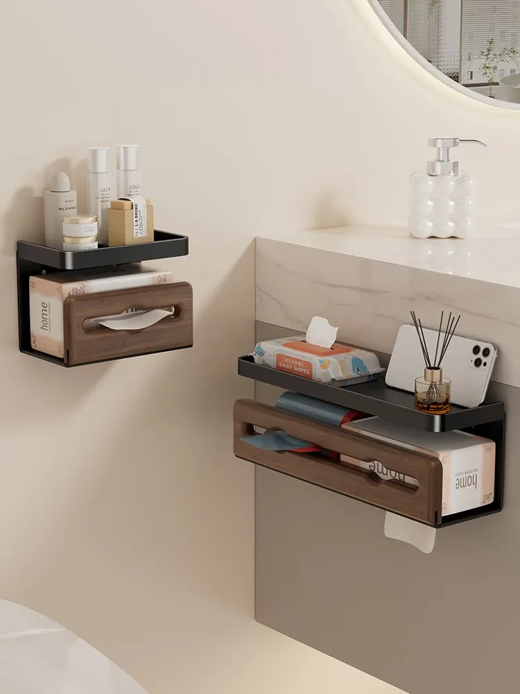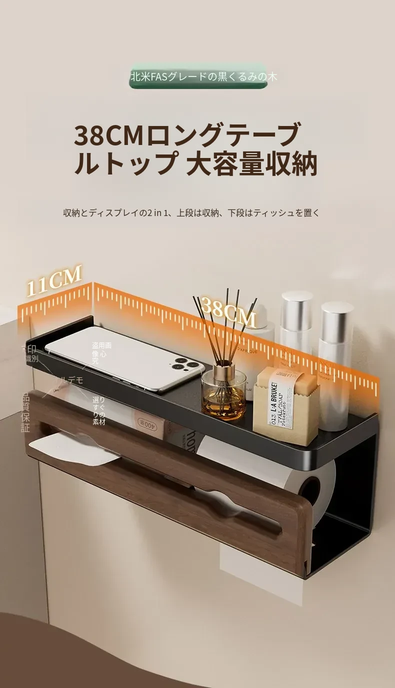 ウォールマウント式無孔ウッドティッシュボックス - おしゃれなクルミ材製、トイレや家庭で使える収納ラック。実用性とデザイン性を兼ね備えた、生活空間を格上げするアイテムです!